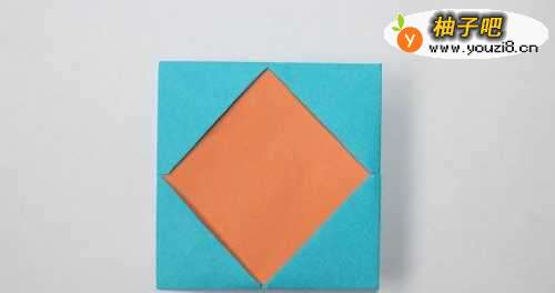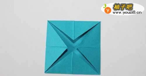 5再翻面,将温独爷四个小正方形的角塞到里面。