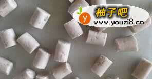 5切好的芋圆。锅里加水煮沸,将芋圆下入锅中,轻轻搅动防止粘底。煮到芋圆都变大浮起,约2-3分钟。捞出放入冷水中过凉。
