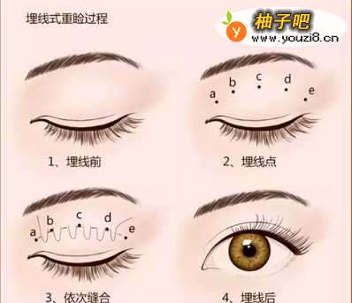 一、埋线法双眼皮 埋线法比较适宜睑裂大,眼睑薄,眼睑皮肤无松弛,无内眦赘皮的年轻人。此方法操作简单,容易掌握。且创伤小,皱襞外形自然。没有手术切口所以不影响工作、生活,众多求美者比较钟爱此方法。 但此方法的最大缺点就是上睑皱襞容易变浅变窄,如果医生技术欠缺,掌握不好技巧,上睑皱襞就会很容易消失,双眼皮还会变成单眼皮,从而导致手术失败。另一种情况是线结埋入过浅,这样就会很容易外露或形成小囊肿,这样手术效果会很不理想,影响美观。