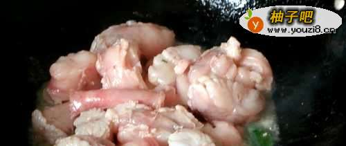 2锅中放油烧热,放入葱、姜、八角炒香。