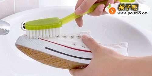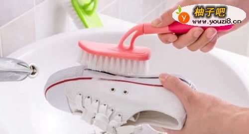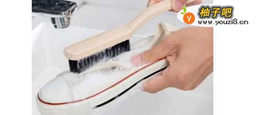 4第四步:用刷子刷洗鞋面,把鞋面刷干净一些。