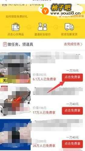 3接着会进入当前免费拿商品列表,其中有较多项,可以找到自己喜欢的,点击对应按钮,即可进入详情页。