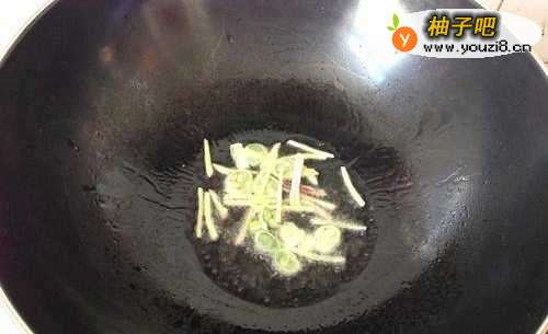 3热锅后倒入适量的食用油,油热后将葱姜放入锅中爆香。