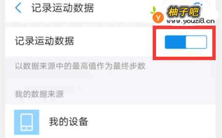 5点击记录运动数据右边按钮,变为蓝色即为打开状态,这时支付宝蚂蚁森林步数就开启了