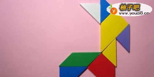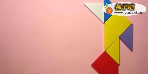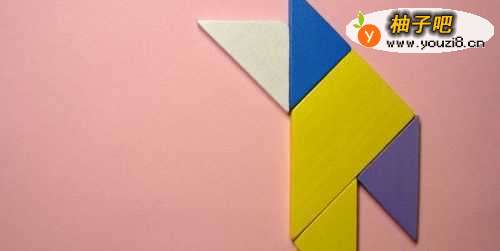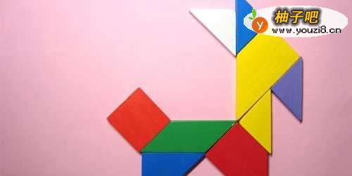 6最后,取红色的正方形连接在平行四边形左边,作为小山羊的尾巴的部分,拼接位置,如下图所示。这样,可爱的小山羊的图形就拼好了。可以让孩子仔细看一遍后,自己动手拼图,并不断回忆拼图的顺序,这可以锻炼孩子的记忆能力。培养孩子的过目不忘的能力,对孩子以后的学习有帮助。