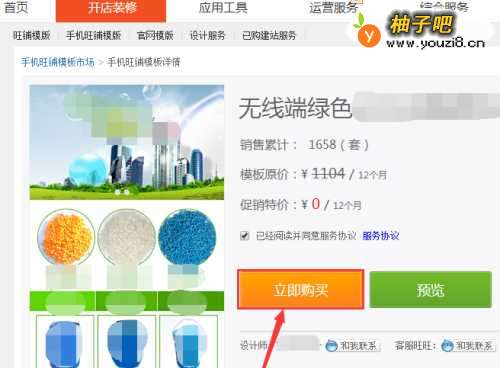 5找到适合自己旺铺风格的模板之后,点击【立即购买】的按钮。
