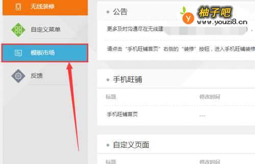 2打开无线建站中心之后,在左侧的找到【模板市场】。