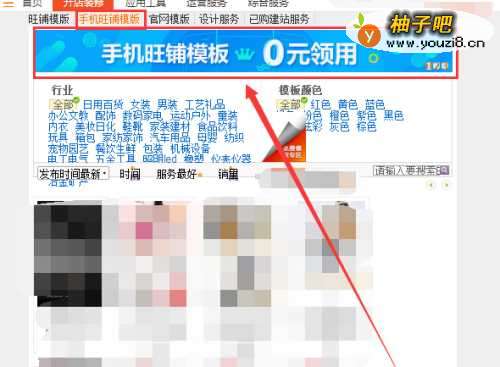 3在手机旺铺模板的下方,现在我们看到中间有一张0元领用的图片,点击打开它。