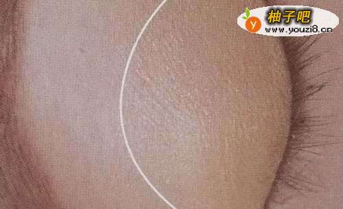 5使用海绵棒将上眼线及下眼线的后二分之一的位置描画深咖啡色,用米白色打亮眼头。