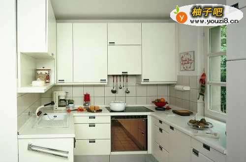 4(三)在工作的分配上,我常将清洁区和配膳区安排在一起,而烹调独居一处。如果你剩余的有足够空间,餐桌可安排在房间尾部这样的布局看起来简单明了。把所有的工作区都安排在一面墙上,通常在空间不大、走廊狭窄情况下采用。所有工作都在一条直线上完成,节省空间。但工作台不宜太长,否则易降低效率。在不妨碍通道的情况下,可安排一块能伸缩调整或可折叠的面板,以备不时之需。厨房的整体色调是以白色为主,看起来干净。整体的感觉简单,分类明了,却不单调,也方便取放。也可看出是一个主人公是一个大气,干练的人。
