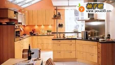我们为了达到室内地材的统一,在厨房也是用如花岗岩、大理石等天然石材。虽然这些石材坚固耐用,华丽美观,但是天然石材不防水,长时间有水点溅落在地上会加深石材的颜色,变成花脸。如果大面积湿了,会比较滑。潮湿的厨房地面不适合用天然石材。实木地板、强化地板虽然工艺一直在改进,但最致命的弱点还是怕水和遇潮变形。目前在厨房里用得比较多的材料还是防滑瓷砖或通体砖,既经济又实用。提醒:在装修厨房选购材料时要充分考虑防潮功能哦。