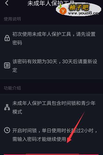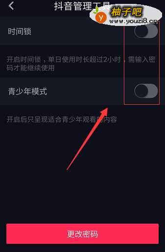 7进入抖音管理工具,将时间锁和青少年模式开关打开,如下图所示