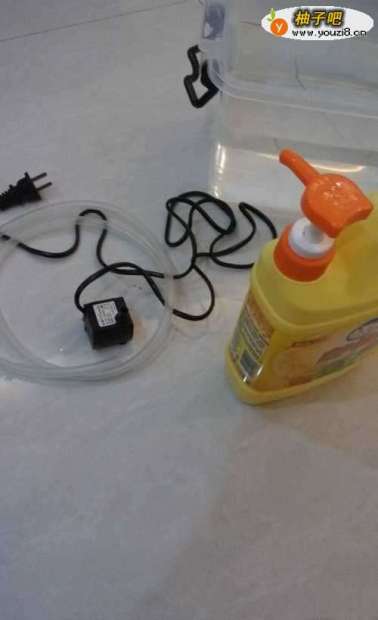 4清洁剂的盖 以及下面的硬管 强制征用 嘻嘻【中间那个白色的圈 是清洁剂压缩头上取的 只起一个固定加装饰作用】将清洁剂压缩头的盖和硬管组装下【一般都是能插进来的, 硬管太细或粗 那找找家里洗发水里面的管子 剪下来一节 总有可以用的】再在收纳盒盖子上选择好位置 打一个小洞 ,8mm的软管和潜水泵连接,如下图组装下