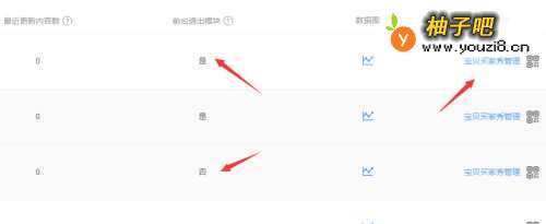 4点击【宝贝买家秀】对店铺内的所有商品的买家秀进行管理,点击对应商品右边的【宝贝买家秀管理】,只要买家秀数量大于等于4个就会前台透出模块,如果显示【否】说明此商品买家秀数量还没达到要求。