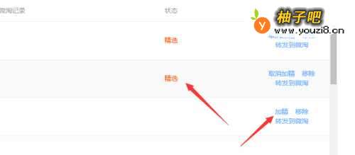 5进入【宝贝买家秀管理】,对当然商品的买家秀进行管理。有加精、移除、转发到微淘这三个功能,加精就会显示在买家秀中,如果不好的买家秀就可以移除,还可以转发到微淘。