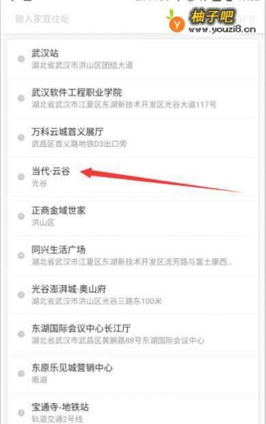 5点击了以后我们可以看到一个详细的地址列表,这里点击自己所在的位置后就设置好了自己的位置