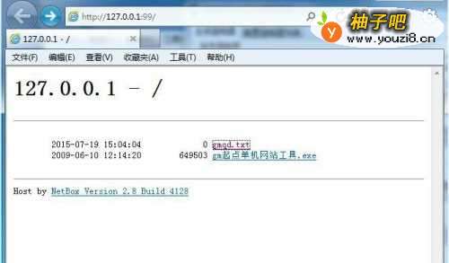 2然后我们打开:《gm起点单机网站》文件夹里面的(gm起点单机网站工具)。双击打开!这时候会弹出一个网页,那么这个就是你本地的网址了,如无意外的话,是“127.0.0.1”的,因为站长的80端口占用了,所以我现在截图弹窗这个是“127.0.0.1:99”,接着就是点网址里面的那个gmqd.txt文本了。