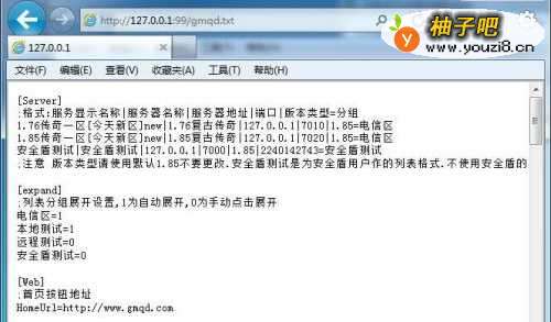 3看,点开http://127.0.0.1:99/gmqd.txt之后,我这里出现了登陆器的列表格式信息。
