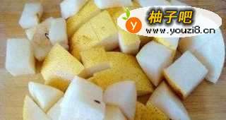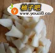取一个雪梨去皮去核切成小丁。