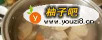 5汤圆面团和好后揪一面团在左手心,右手揪出一个小面团放在左手掌边搓成小圆子放入梨汤锅里。