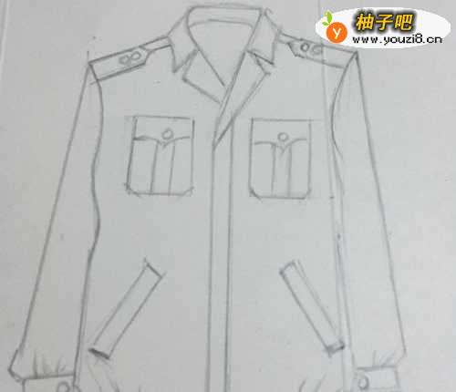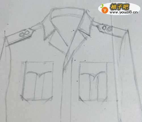 5第五步 再画上夹克服的跨兜 和两个肩牌