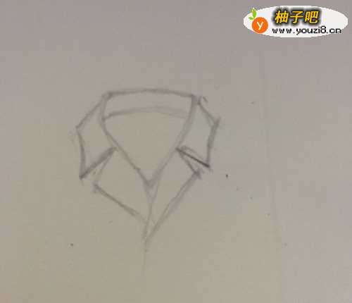 第一步 先画一个长一点的鸡心形 (因为它是一件小撇领子)