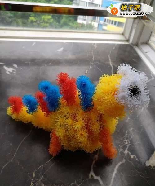 恐龙是地球上出现过的远古生物,充满了神秘感,小朋友们对恐龙充满了好奇。下面我们就一起用蓬蓬球玩具来做一只恐龙吧!