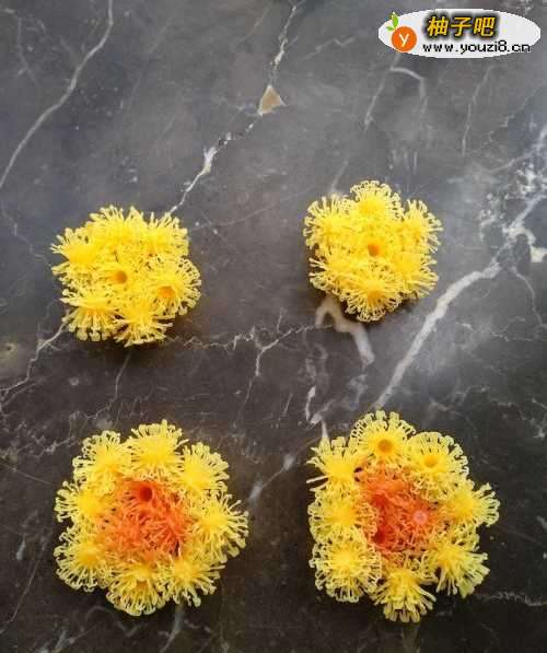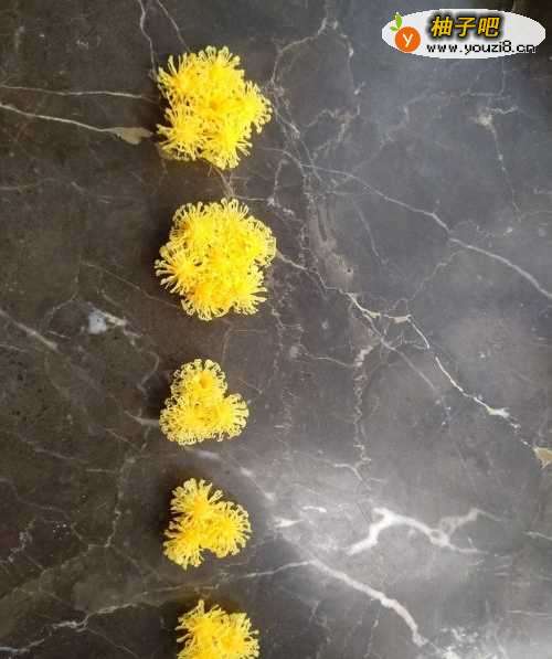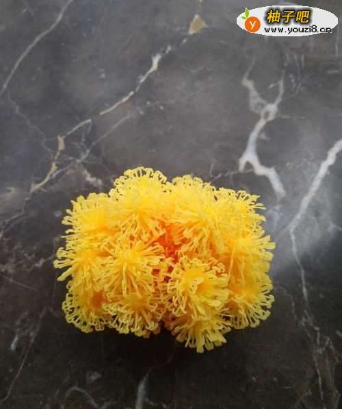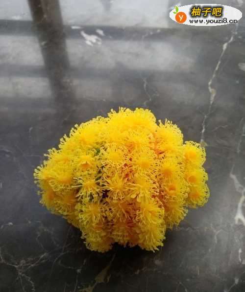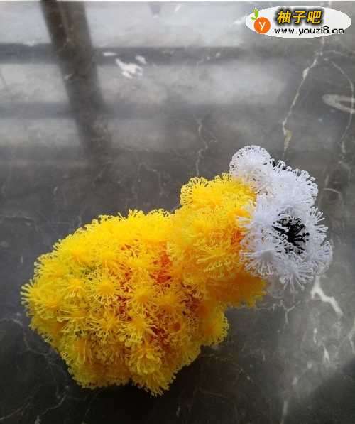 因为黄色的蓬蓬球用得很多,黄色可能不够用,所以里面填充的蓬蓬球就用了黄色之外的其它颜色。