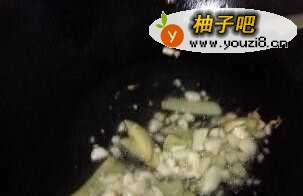 4炒香料。热锅,倒油,煸炒大蒜姜片
