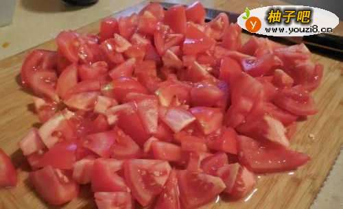 2甜椒切丁,番茄切大块备用