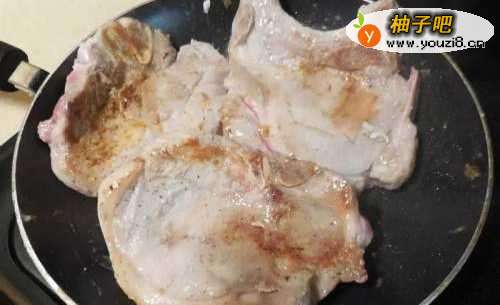 4同一时间,用中大火把猪排两面煎出金黄色
