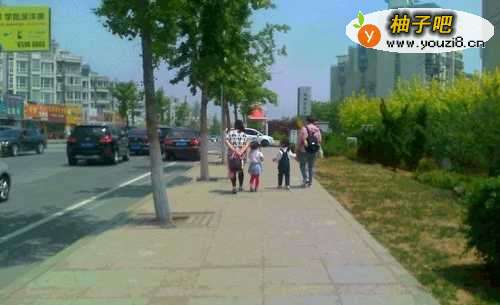 孩子在小的时候,家人都要领着孩子外出晒太阳或散步,有的大人还要用推车推着孩子,大人在带着孩子外出的时候,不能在道路的一边走,如果在道路一边走就要阻碍车辆的通行,是非常危险的。