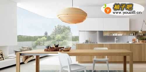 把大尺寸的方桌放在厨房,既能充分布置出用餐空间,又能身兼操作台的功能,可以轻松享用早餐和制作甜点。L型的大飘窗为室内打造出良好的视线和美好的光线。