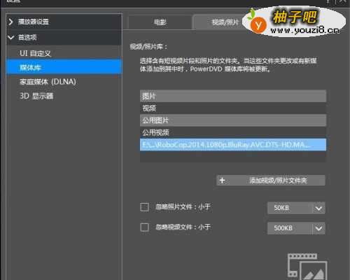808-还是左边媒体库,把 蓝光电影名称RoboCop2014 文件夹所在位置 填入到 公用视频 内,点击确定结束设置;