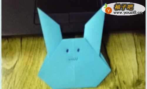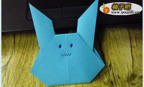 7将整个小兔子翻转过来,我们再用笔沿着中心线,画出小兔子的眼睛和嘴巴,这样,一个简单的小兔子就成型啦,感兴趣的伙伴们自己动手试试吧!