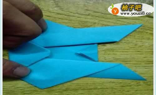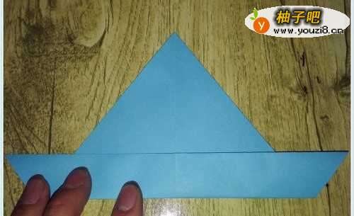 3如图所示,再将方形纸折回三角形的形状,然后沿着斜边平整的往上折一下。