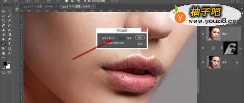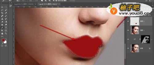 1.当前我们给人物添加一个口红,先对人物进行磨皮。 2.磨皮之后,就可以给人物进行口红的添加了。 3.使用钢笔工具将口红的轮廓建立一个路径。 4.然后按control+回车键,建立选区,打开羽化命令羽化三个像素。 5.之后填充一个死亡芭比口红的颜色,点击图层混合模式。 6.选择正片叠底,再降低一下不透明度。 7.最后使用橡皮擦工具,将中间的牙齿擦出来,这样就将口红添加好了,还是比较不错的,挺自然的。