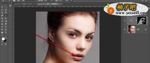 22.磨皮之后,就可以给人物进行口红的添加了。