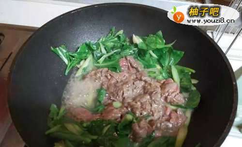 6半熟牛肉倒回锅中,下调味料翻煮岔率孝
