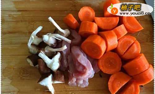 5胡萝卜、香菇少许,黑木耳这些配菜都切好,备用。