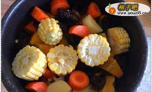 玉米、南瓜、黑木耳、香菇、胡萝卜