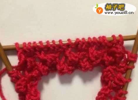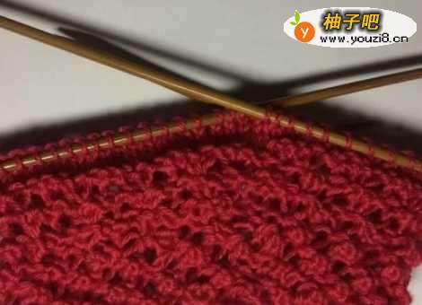 3第二圈,在一个上针里织出3针上针。织法:只一个上针,针不退出,然后向上绕线后再原来的洞眼里再织一针上针。这样一针加变成了3针。接着后面的2、3、4针3针并一针织下针。这样3针就变成了2针。重复这方法织完第二圈。