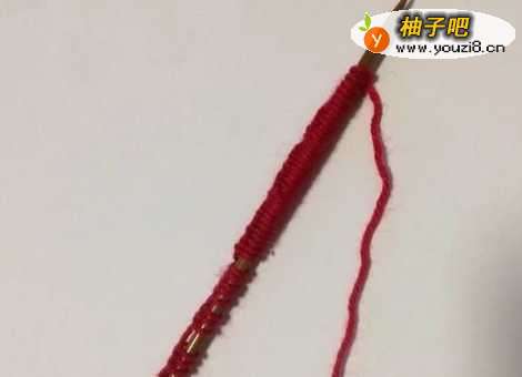 2把起好的线圈,分配在3根针上,我们从上往下织,开始织一圈上针。完成第一圈。