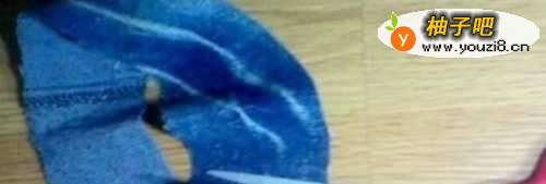 7随后用剩下来的那块布料上剪下两条大约2cm宽的布料,