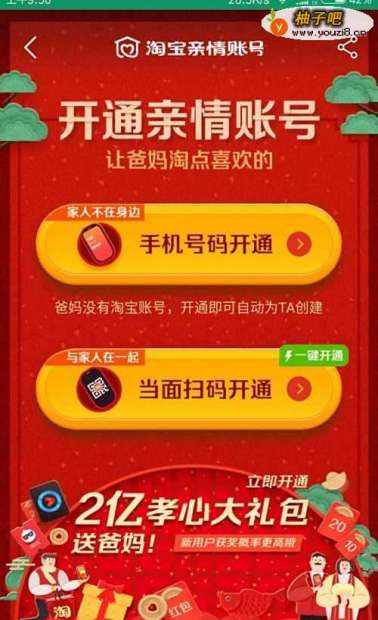 2进入后,点击上方“开通淘宝亲情账户”