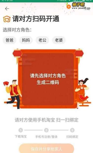 5选择上方的角色,点击一下生成二维码,保存并分享给家人,如图所示。