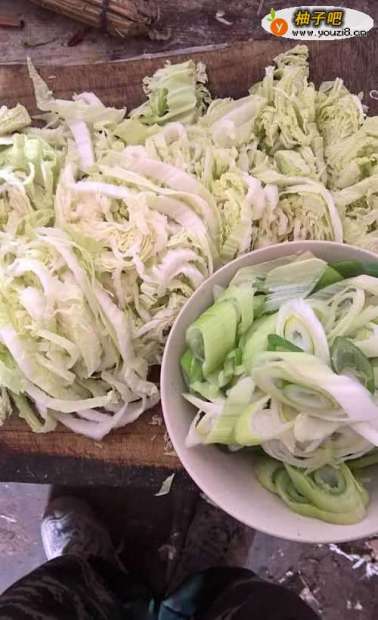 2葱和白菜都切成丝状放在一旁备用。