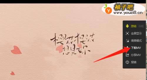 4把鼠标放在播放页面中,右边显示出操作栏,选择【下载MV】