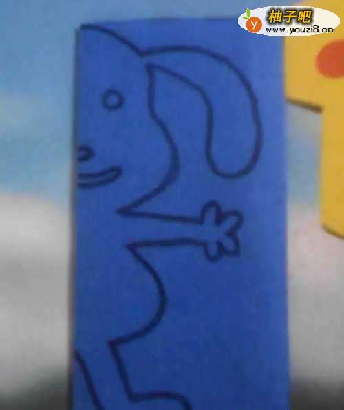 3拿画笔在卡纸上画图,我画的是小狗,记住一定要画一半的,因为我要剪的小狗是对称的。