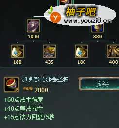 第一件装备笔者会优先出个大圣杯来弥补光辉严重缺蓝的问题。并且在对线上,圣杯能够帮主我们很好的压制线上的对手